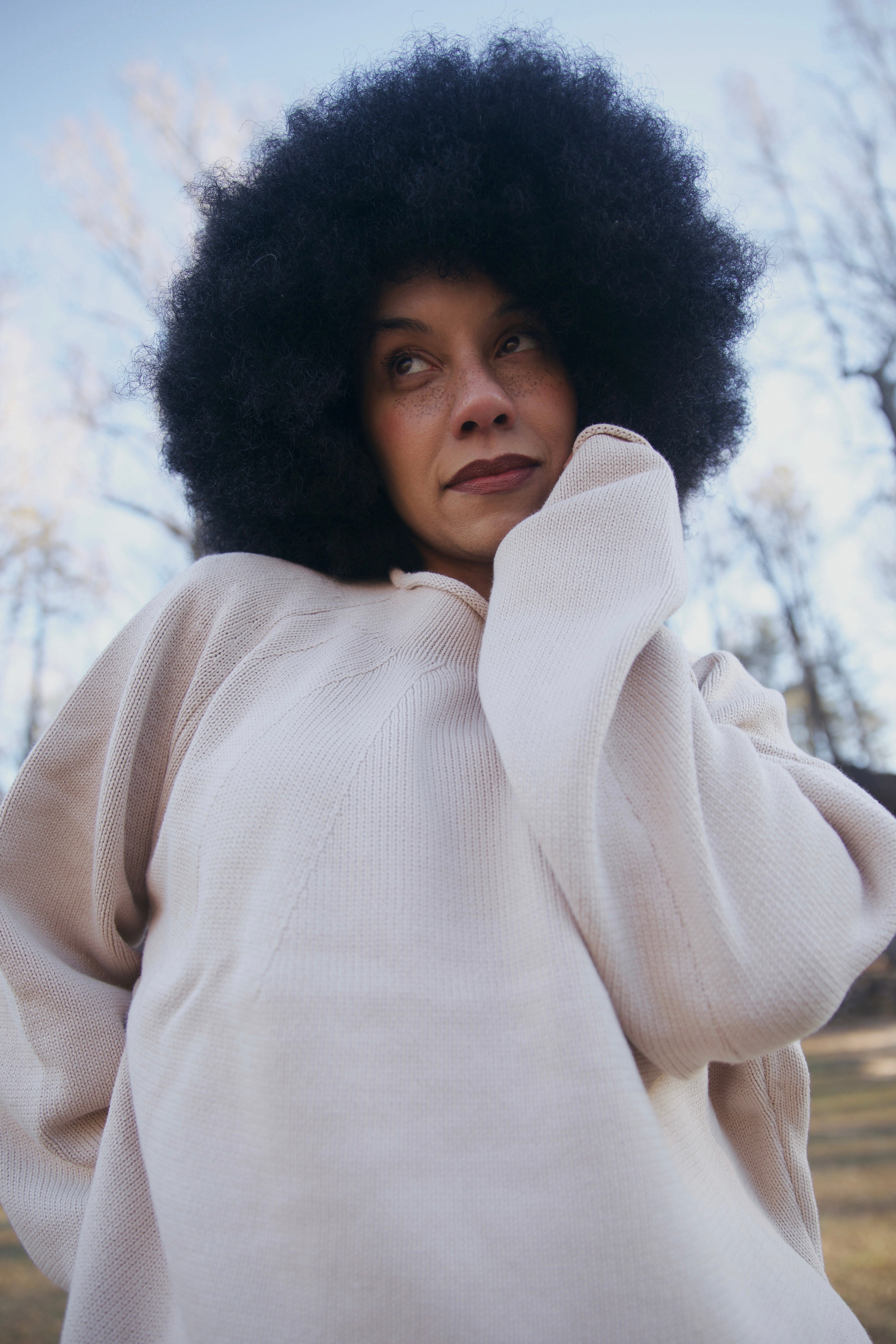 (This sweater runs small. Most people prefer sizing up 1–2 sizes.)